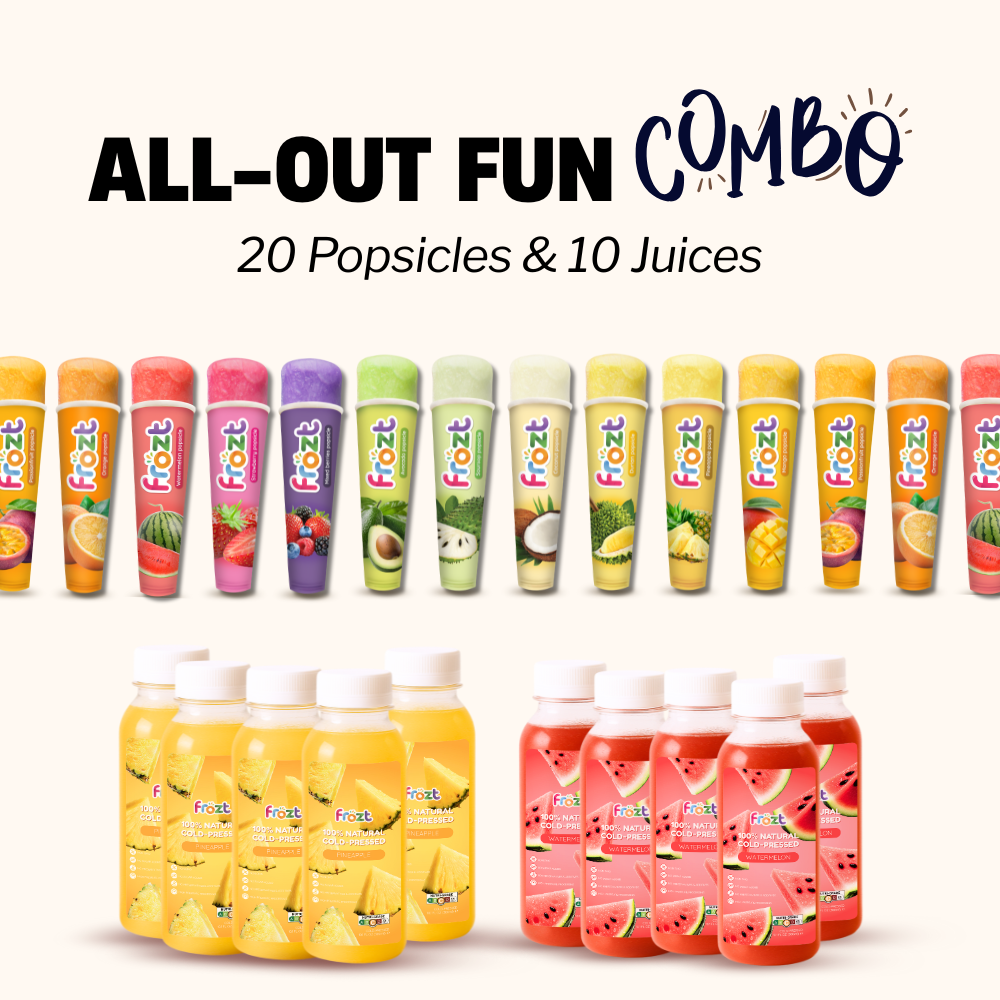 Frozt combo packs give you juices + popsicles together, frozen fresh for more fun.