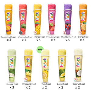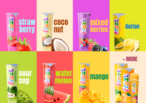 All your favourite flavours, in one place - mango, strawberry, watermelon, mixed berries, coconut, pineapple, orange, passionfruit, soursop, and durian.